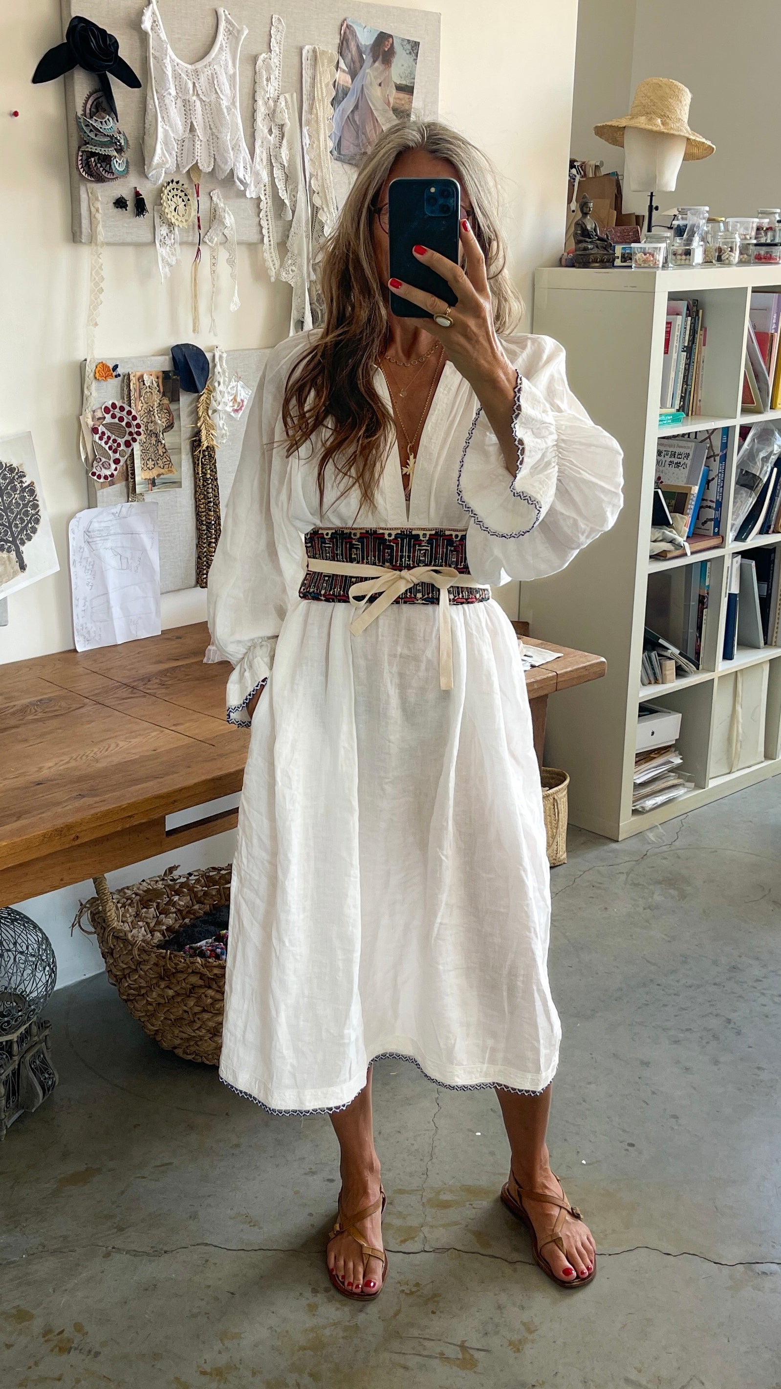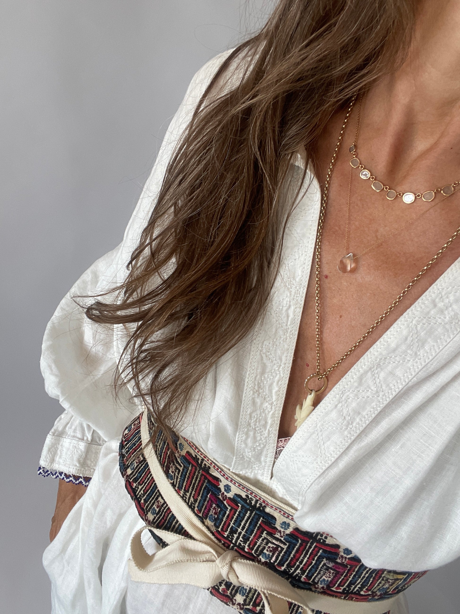 Orbi Belt – Assos, A one-of-a-kind piece crafted from antique hand-embroidered wedding underpants traditionally worn by nomadic shepherds in the rural Assos region of Turkey. Each belt is made from these rare, intricately detailed textiles—originally part of ceremonial attire for weddings or festive occasions. Sourced from vintage markets, every piece carries its own story, complete with the beautiful imperfections that come with age and handcraft. The Orbi belt design turns these historic fabrics into a striking and versatile accessory. Wear it to elevate a simple dress (we love it paired with our Daisy), cinch it over a blouse, or layer it over knitwear for contrast and character.